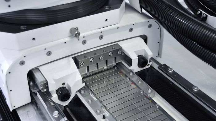 - Automatically swiveling workpiece table